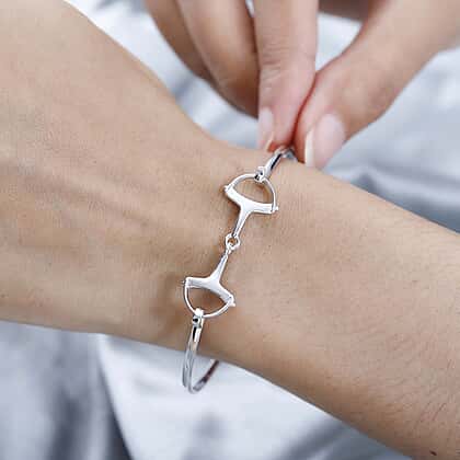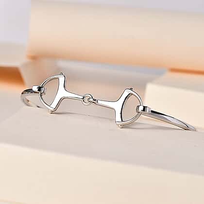 Designer Inspired Platinum Overlay Sterling Silver Snaffle Bangle (Size 7.5)