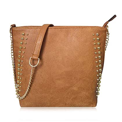 Designer Inspired Shoulder Bag with Chain Strap - Tan
