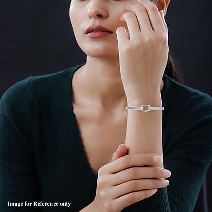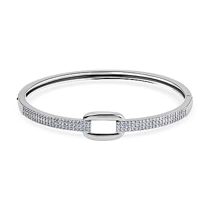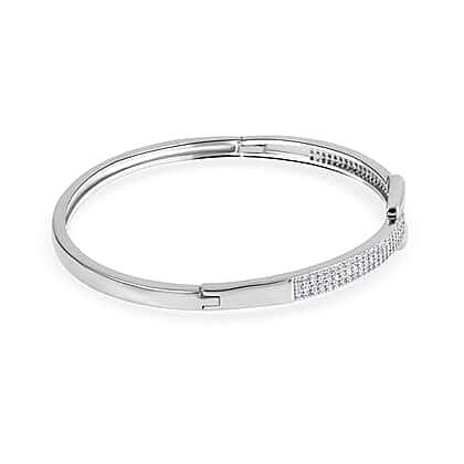 Desiner Inspired- Cubic Zirconia Bangle (Size - 7. 5) in Silver Tone
