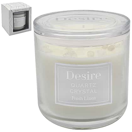 Invoke the comforting scent of freshly laundered sheets with the Desire Fresh Linen Candle. This white candle is perfect for those who enjoy clean and subtle fragrances that evoke a sense of cleanliness and serenity. Ideal for creating a spa-like ambiance in your home, it promotes relaxation and a peaceful night's sleep. The premium wax blend ensures a consistent fragrance release and a long-lasting burn, making it a staple in any home looking to add a touch of freshness.