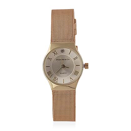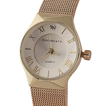 DIAMOND and CO LONDON Diamond Studded Bracelet Watch with a Stainless Steel Mesh Style Strap in Gold Tone
