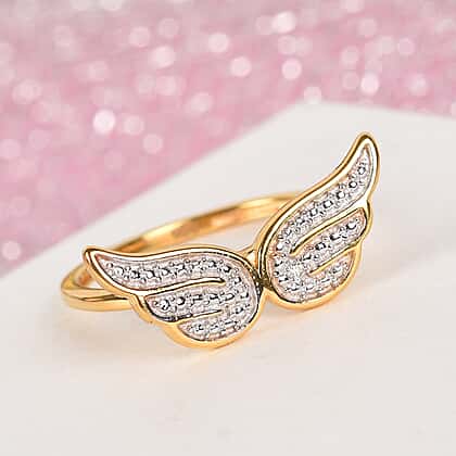 Diamond Angel Wing Ring in 14K Gold Over Sterling Silver