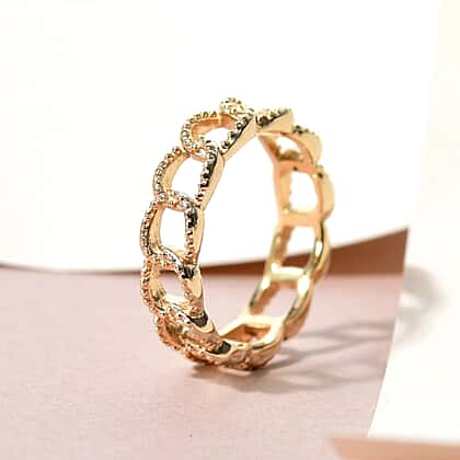 A curb link chain ring lends rustiness and boldness to the authenticity of this unique ring, with silver glints throughout its surface. This ring was made with a straight shank and split shoulders, making it a stylish and comfortable piece of jewellery. Gold plating enhances the durability and endurance of sterling silver by giving it a gorgeous gold brilliance. With only 1.57 grams of metal used, wearing this ring for prolonged periods of time is not an issue.