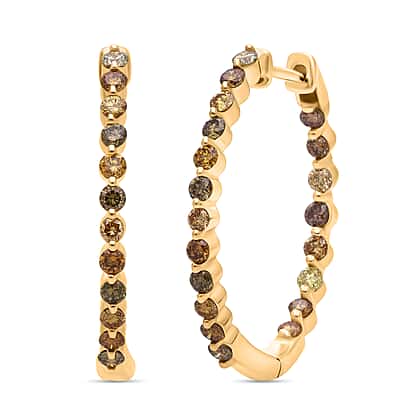 Biggest Close Out Deal - 9K Yellow Gold Natural SGL Certified (SI-I1) Multi Colour Diamond (Green ,Brown, Yellow ) Hoop Earring 1.01 Ct.