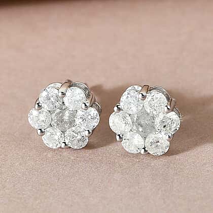 Certified 1 Carat Diamond Pressure Set Studs in 9K White Gold
