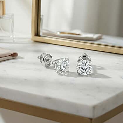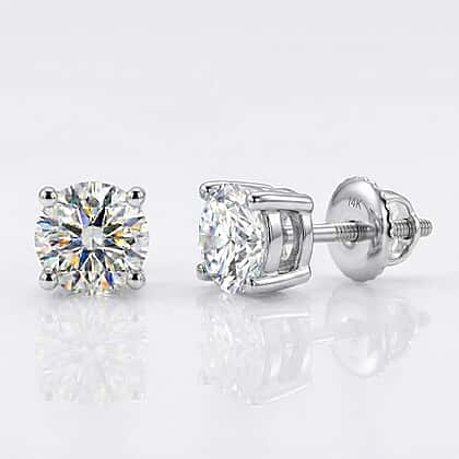 LUXURIANT 1.5 Ct. Lab Grown Diamond Solitaire Stud Earrings with Screw Back in 14K White Gold SGL Certified