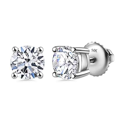 LUXURIANT 14K White Gold SGL Certified Lab Grown Diamond Solitaire Stud Earrings with Screw Back 1.50 Ct.