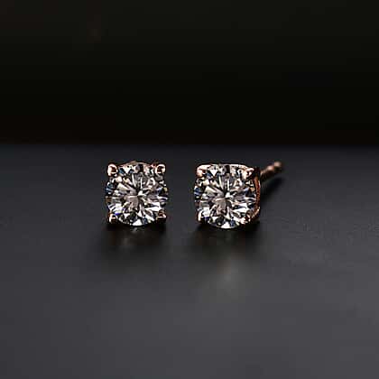 Luxuriant Diamond Lab Grown Diamond Stud Push Back Earrings in Vermeil Rose Gold Plated Sterling Silver 5 Ct.