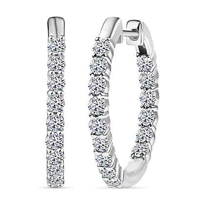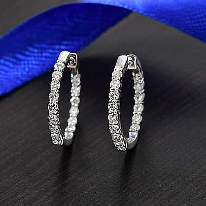 LUXURIANT 1 Ct. Lab Grown Diamond Full Hoop Inside-Out Earring in Rhodium Overlay Sterling Silver (SI-GH)