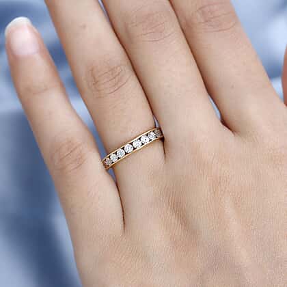 Diamond Half Eternity Band Ring in 18K Yellow Gold Vermeil Plated Sterling Silver