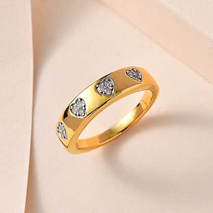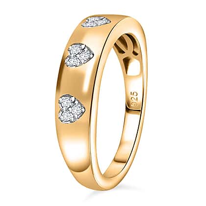 White Diamond Wedding Band Heart Ring in 18K Vermeil Yellow gold Plated Sterling Silver 0.10 ct 0.096 Ct.