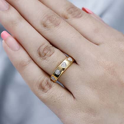 Diamond Half-Eternity Heart Band Ring in 18K Vermeil Yellow Gold Plated Sterling Silver 0.10 Ct