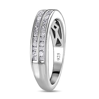 Stay fashion forward with our White Diamond Ring in Platinum Overlay Sterling Silver. The band-style ring crafted in platinum overlay sterling silver, features dazzling white diamonds in a channel setting. The combination of platinum overlay and sparkling diamonds creates a trailblazing look perfect for red carpet events. This is one piece that can celebrate your milestone moment and give you an updo for your boardroom presentation by elevating any ensemble with effortless style.