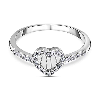 Diamond Heart Ring in Platinum Overlay Sterling Silver 0.15 Ct