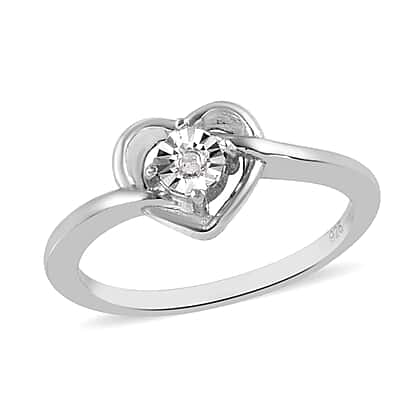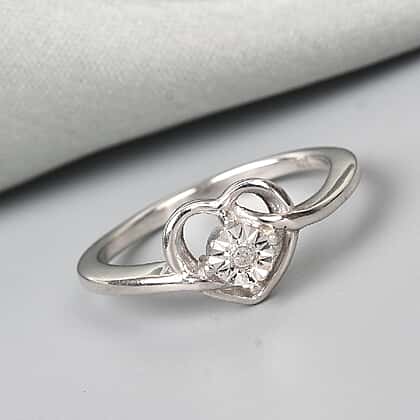 Diamond Heart Ring in Platinum Overlay Sterling Silver
