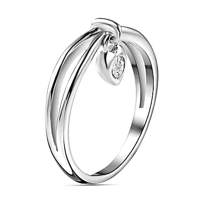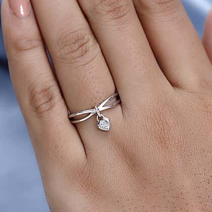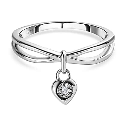 Diamond Heart Solitaire Ring in Platinum Overlay Sterling Silver