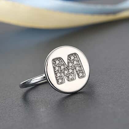 White Diamond M Initial Ring in Platinum Plated Sterling Silver