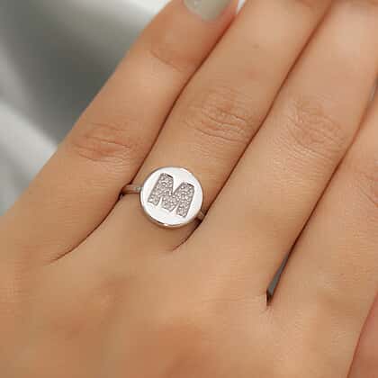 Diamond Initial-M Ring in Platinum Overlay Sterling Silver