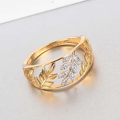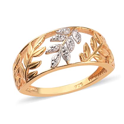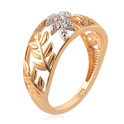 Diamond Leaf Vine Ring in 14K Gold Overlay Sterling Silver