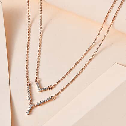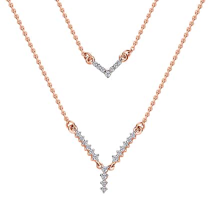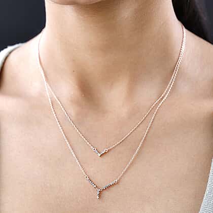 The quiet elegance of silver finds the rapturous brilliance of diamonds in this double-strand necklace. The beautiful neckpiece has a tapering design that culminates in a V shape. Rose Gold Vermeil leaves a lovely sheen to the sterling silver necklace inspiring a whole new look and level of confidence for its wearer. The uncomplicated design will stand the test of time and remain your faithful friend hereafter.
