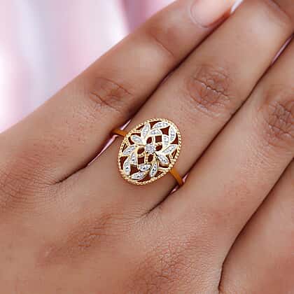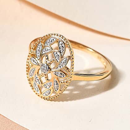 Diamond Ring in 18K Vermeil Yellow Gold Plated Sterling Silver