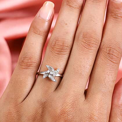 Diamond Ring in Platinum Overlay Sterling Silver 0.15 Ct