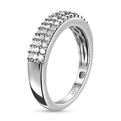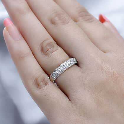 White Diamond Band Ring in Platinum Overlay Sterling Silver 0.50 ct 0.495 Ct.