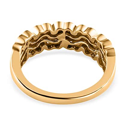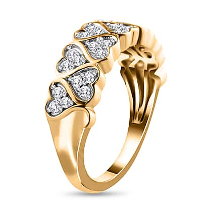 Elevate your jewellery collection with this enchanting diamond heart ring, a symbol of love crafted to perfection. Its array of heart motifs is intricately adorned with sparkling diamonds, creating an eye-catching beauty that captures the light with every movement. The warmth of the 18K yellow gold vermeil plating adds a luxurious touch to the sterling silver band, ensuring this ring shines as bright as your affection. Perfect for anniversaries, special occasions, or just to say, 'I love you,' it's an exquisite choice that promises to enchant.