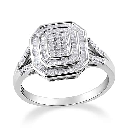 0.50 Carat Diamond Cluster Ring in Platinum Plated Sterling Silver