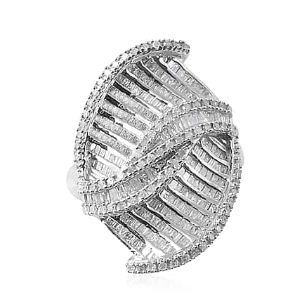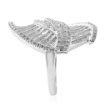 Diamond (Rnd and Bgt) Ring in Platinum Overlay Sterling Silver 1.001 Ct, Silver wt 6.20 Gms