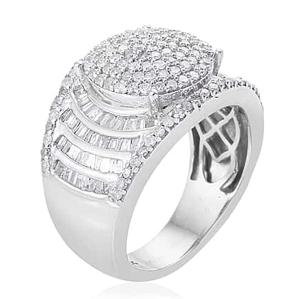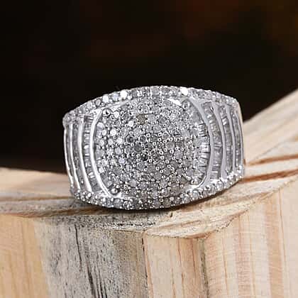 1.01 Ct Diamond Cluster Ring in Platinum Plated Sterling Silver 7.41 Grams