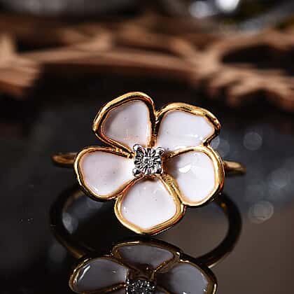 Diamond (Rnd) Enamelled Periwinkle Flower Ring in 14K Gold Overlay Sterling Silver 0.005 Ct.