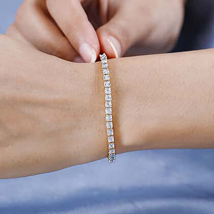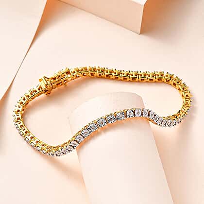 Diamond Tennis Bracelet (Size - 7.5) in 18K Vermeil Yellow Gold Plated Sterling Silver 0.25 Ct,Silver Wt. 12.11 GM
