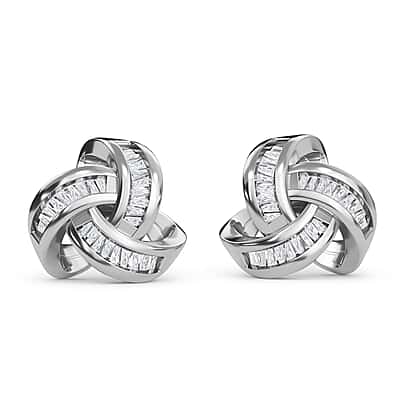 Diamond Triple Knot Stud Push Back Earrings in Platinum Overlay Sterling Silver