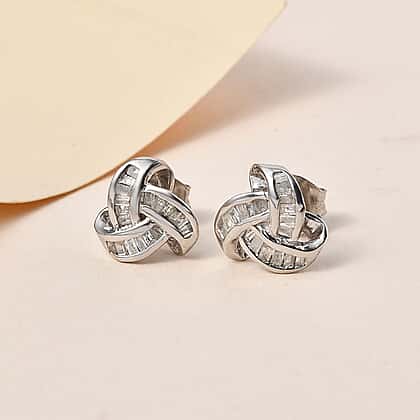 Natural Diamond Knot Stud Earrings for Women in Sterling Silver with Platinum Plating