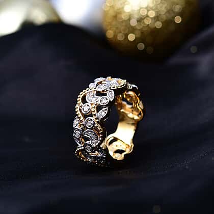 Diamond Twisted Leaf Eternity Ring in 18K Vermeil Yellow Gold Plated Sterling Silver