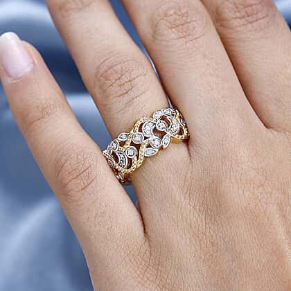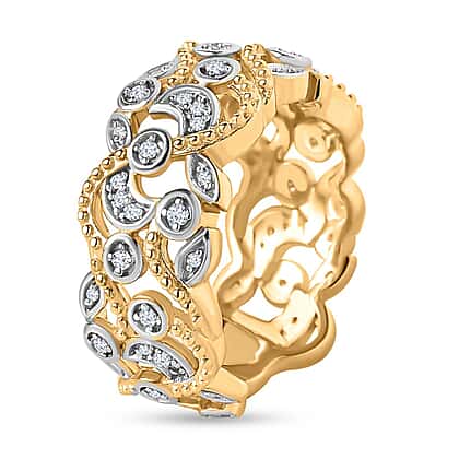 Diamond Twisted Leaf Eternity Ring in 18K Vermeil YG Plated Sterling Silver 0.34 Ct