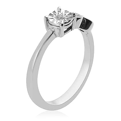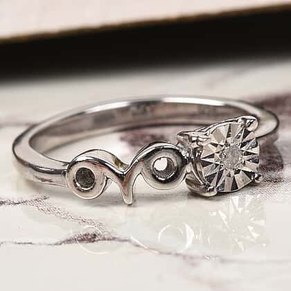 Diamond April Birthstone Zodiac Aries Sign Ring in Platinum Plated Sterling Silver