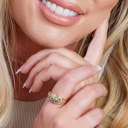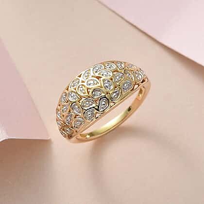 Diamond Dome Ring in 18K Vermeil Yellow Gold Plated and Plating Overlay.