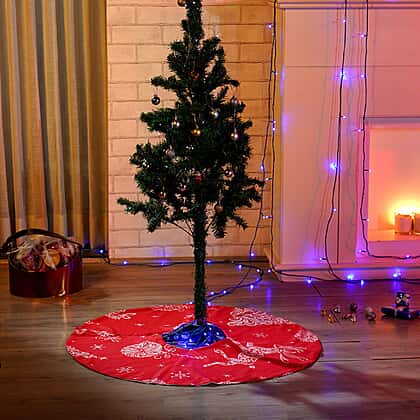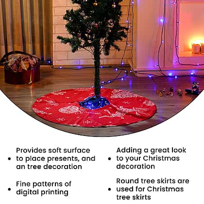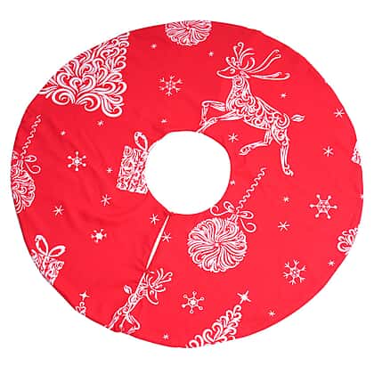 100% Cotton Reindeer Print Christmas Tree Skirt (Size 89Dia Cm) - Red
