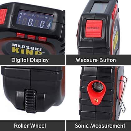 3 in 1 Digital Tape Measure Upto 25 feet with Digital Display, Measure Button, Roller Wheel, Sonic Measurement - Black and Red