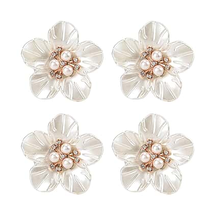 Set of 4 Napkin Rings in Box with White Plum Stick Floral Design