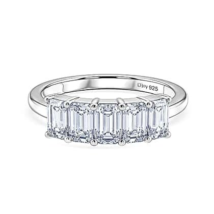 D'Joy - Moissanite 5 Stone Ring in Platinum Overlay Sterling Silver 1.37 Ct.