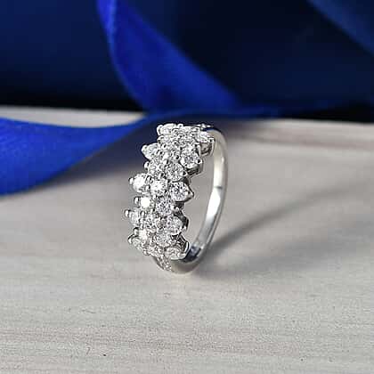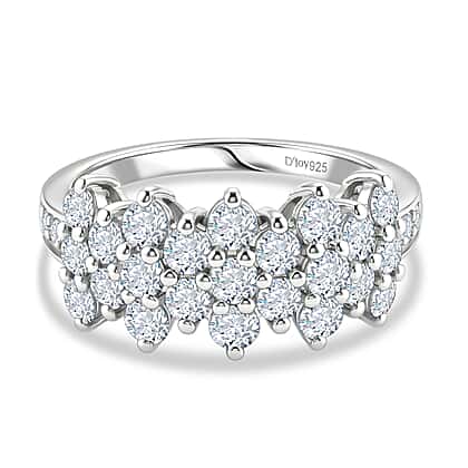 D'Joy - Moissanite Cluster Ring in Platinum Overlay Sterling Silver 1.36 Ct.