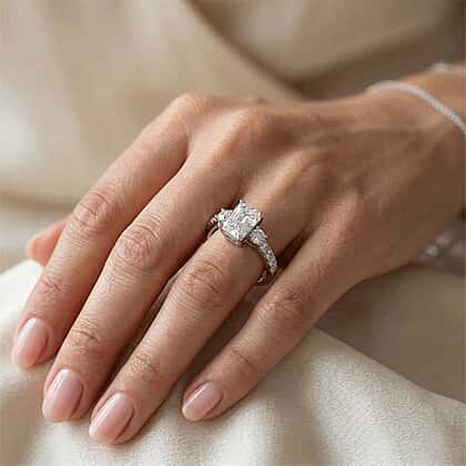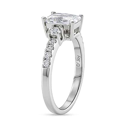 D'Joy - Moissanite GRA Certified Trilogy Ring in Rhodium Overlay Sterling Silver 2.10 Ct.