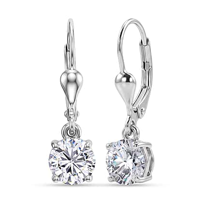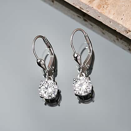 D'Joy - Moissanite Solitaire Drop Earring with Lever Back in Platinum Overlay Sterling Silver 1.60 Ct