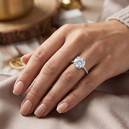 D'Joy - Moissanite Solitaire Ring in Rhodium Overlay Sterling Silver 3.30 Ct.