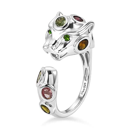 D'Joy - Multi-Tourmaline & Natural Chrome Diopside Living Creature Ring in Rhodium Overlay Sterling Silver 1.70 Ct.