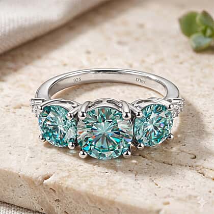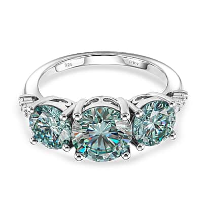 D'Joy - Paraiba Moissanite Trilogy Ring in Rhodium Overlay Sterling Silver 4.00 Ct