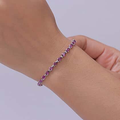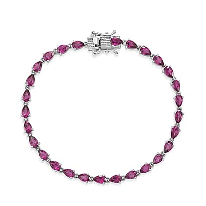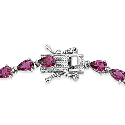 D'Joy - Radiant Ember Garnet Cluster Bracelet (Size - 7) with GB Lock Box in Rhodium Overlay Sterling Silver 7.61 Ct.